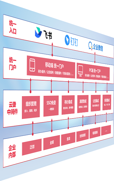 对协作平台提供支持服务,,,,支持企业应用与协作平台对接,,,包含组织同步、、、消息集成、、、、待办集成等。。支持目前主流的协作平台:钉钉、、企微和飞书。。。